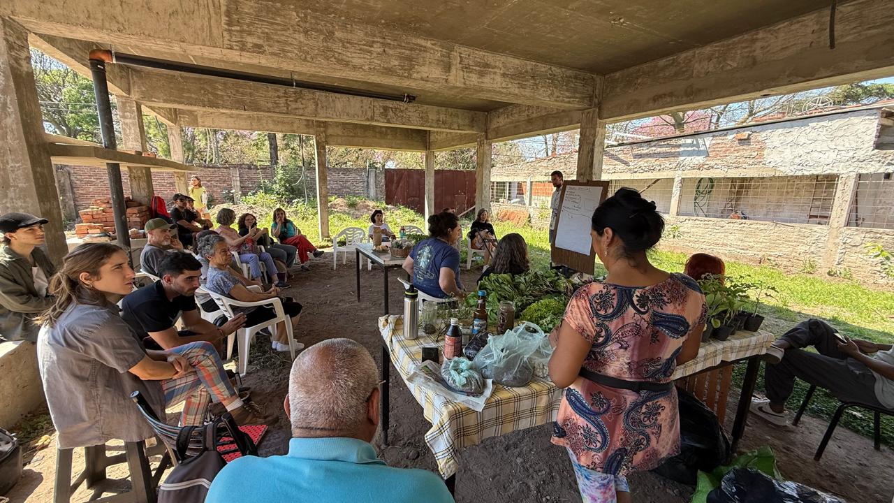 Es sábado y el sol pega fuerte. En la zona sur de Rosario, en el barrio Saladillo, unas 20 personas se sientan en círculo debajo de un techo al aire libre para escuchar cómo es posible montar una huerta que ofrezca verduras durante todo el año.